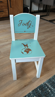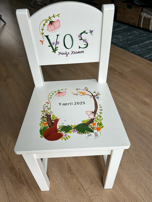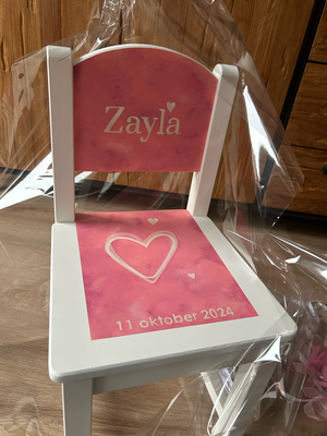 Wat denkt u van een hand beschilderd kinderstoeltje met de naam van de kleine.